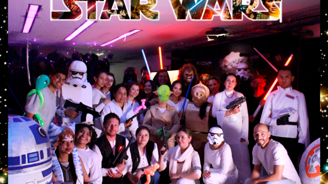 Segundo lugar para: Star Wars, de la Vicerrectoría de medios y mediaciones pedagogías – VIMEP, La guerra de las Galaxias, es una franquicia de ciencia ficción creada por George Lucas que incluye películas, series de televisión, novelas, cómics y videojuegos. La saga se centra en el conflicto entre el bien y el mal, la Fuerza, y el viaje de personajes como Luke Skywalker y Darth Vader.